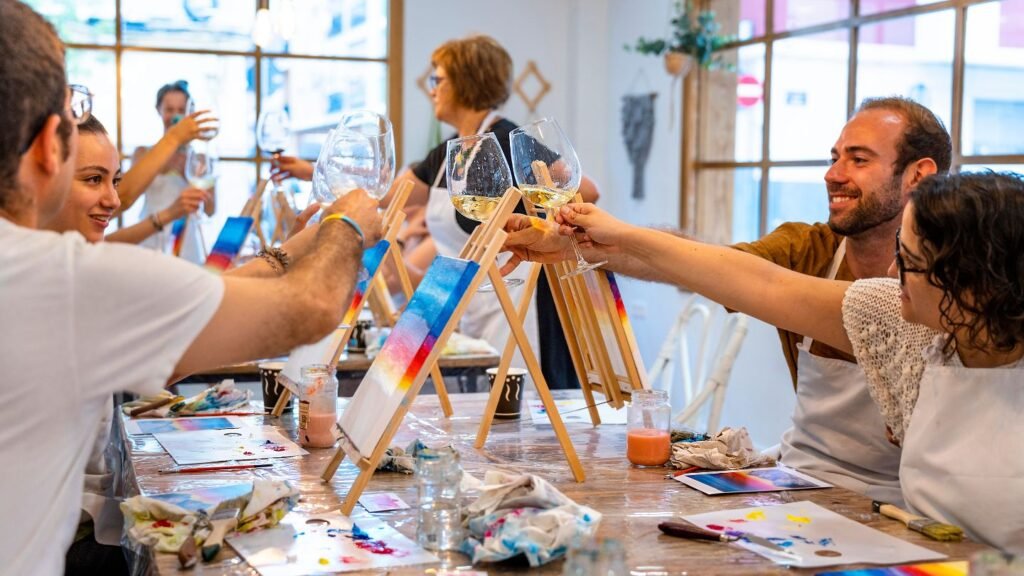 Paint & Wine es más que una actividad: es un respiro para el alma. Una experiencia donde el arte y el vino se encuentran para regalarte una velada divertida, relajada y llena de color. No importa si nunca has pintado, aquí no hay errores, solo trazos sinceros, risas compartidas y momentos que se quedan en el corazón. Ideal para compartir con amigos, en pareja o incluso contigo mismo. Porque a veces, lo que más necesitamos… es simplemente disfrutar.